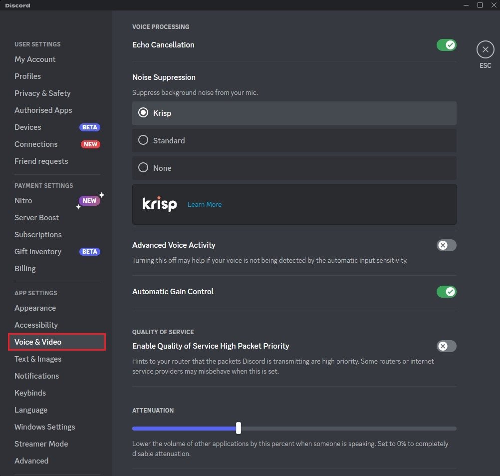 Discord User Settings > Voice & Video