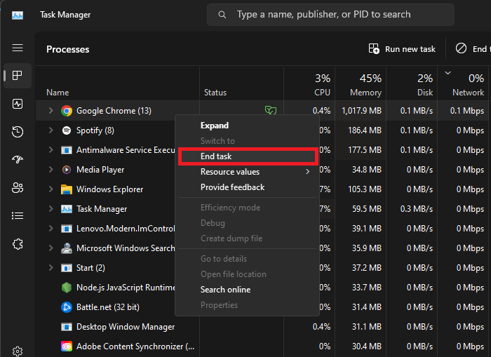 End Unnecessary Processes: Identify and close unnecessary apps that are consuming your network resources. For example, you might find streaming services or large file downloads that can be paused. Make sure to only end the processes that you know won't disrupt your operating system.
