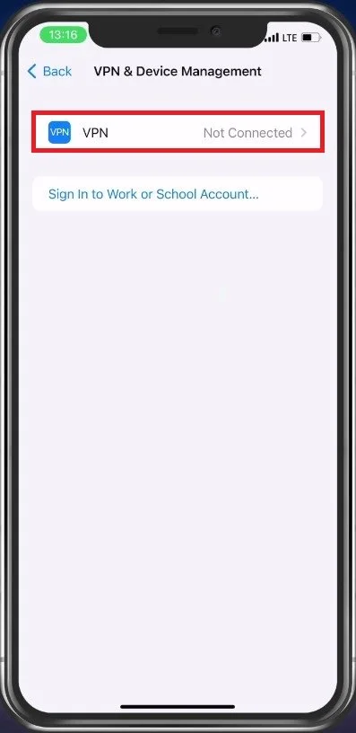 iPhone Settings > General > VPN & Device Management