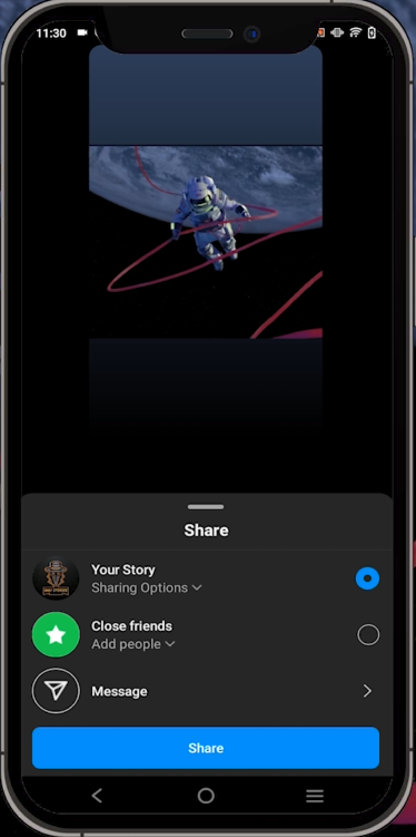 Lastly, the white arrow at the bottom right corner will take you to the final step. Among the various options, simply hit "Share" to finalize and post your story. With these easy steps, you've now transformed your Instagram story with your own music choice!