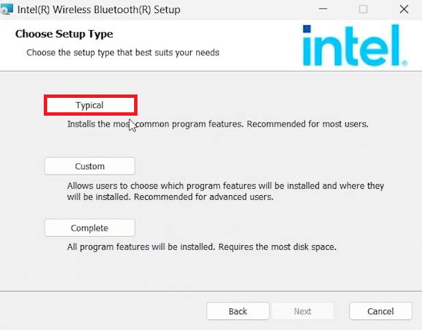 Choose the “Typical” setup type for your Bluetooth adapter installation