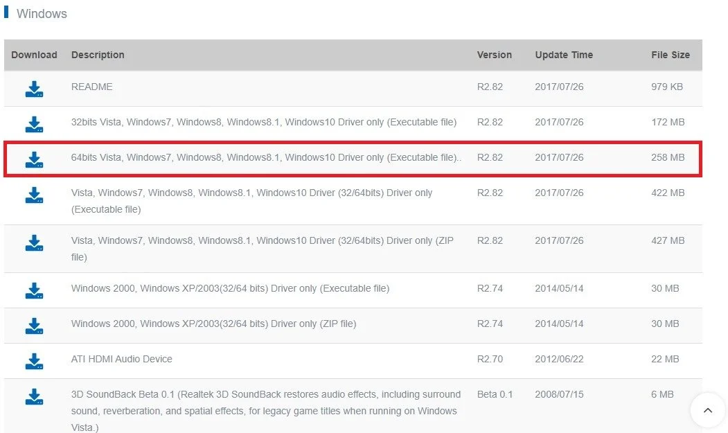 First, you will have to download the latest driver version from the Realtek website or your PCs manufacturer’s website. On this page, download the correct driver for your Windows PC. In my case, this will be the 64-bit Windows 10 Driver or above executable file.