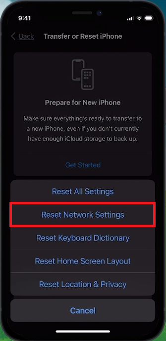 As a last resort, mull over resetting your network settings. Venture into your main settings, tap on the “General” section, and then stroll down to “Transfer or Reset iPhone” followed by “Reset”.