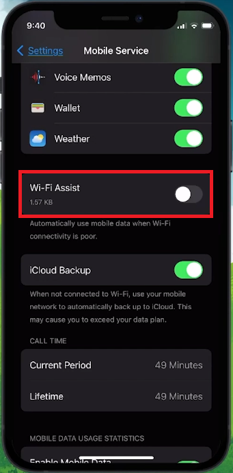 iPhone Settings > Mobile Services > Wi-Fi Assist