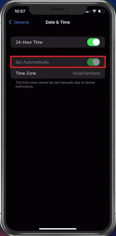 Navigate to your General settings. Here, tap on Date & Time and make sure that the Set Automatically option is enabled. If disabled, your iOS device can prevent your account from making purchases in the App Store or completely disable your account.