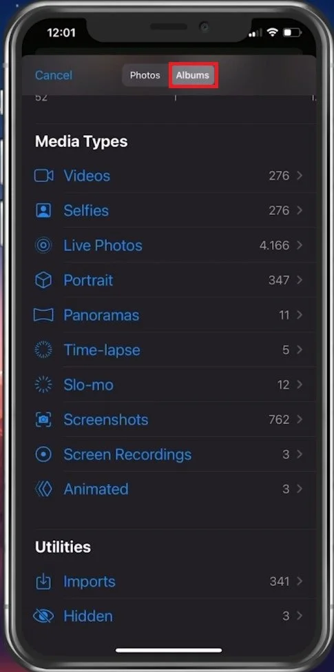 This will open up your photo library from your device. When selecting All Photos, you can navigate through your albums to find the photos you wish to attach.