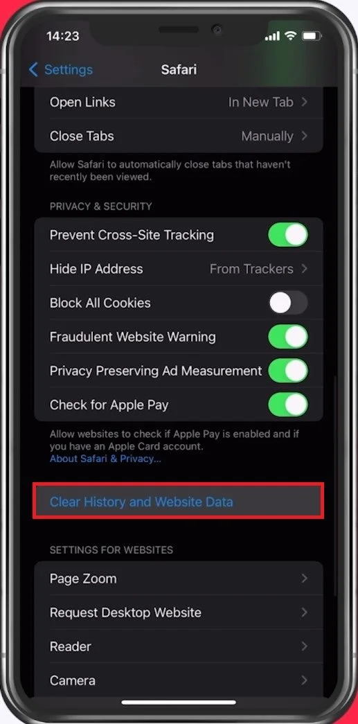 Clear the cached files of your web browsers. For Safari, navigate to your main settings, scroll down, and tap on Safari. Here, tap on Clear History and Website Data. This can sometimes delete a lot of other storage on your device.