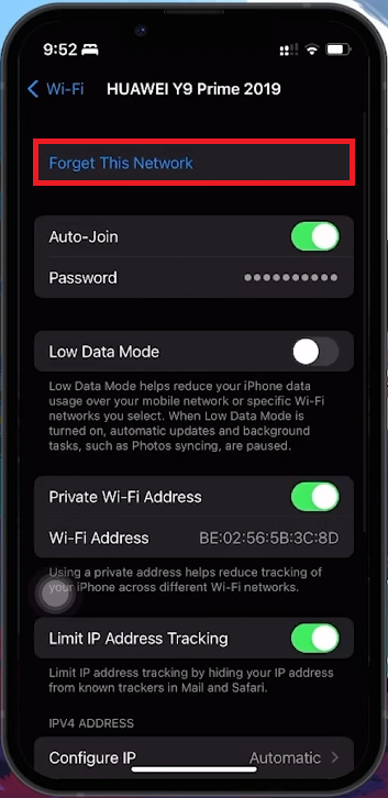 Forget Network: Tap the 'i' icon next to your current WiFi network and select 'Forget This Network'.