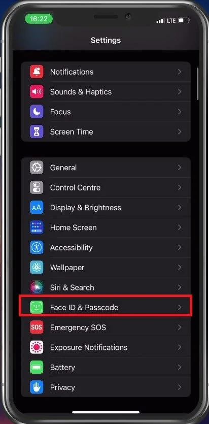 First, make sure to disable Face ID in your iPhone settings Scroll down and tap on Face ID & Passcode.