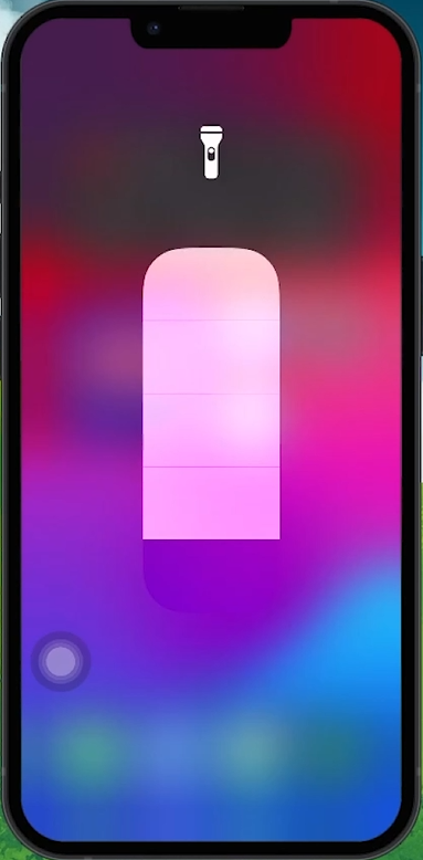 Adjust Brightness: Press and hold the flashlight icon. This action expands the flashlight control, revealing a slider with four brightness levels.