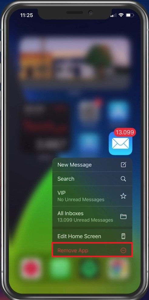 As a last resort, you can try to reinstall the mail application on your iPhone. Tap and hold the mail app icon pressed on your home screen and select Remove App.