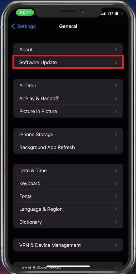 Scroll down and tap on General. In your General settings, tap on Software Update. Select to download and install the latest update. This will require you to restart your device, which will restart all processes running on your iPhone and can help fix the mobile data not working problem you are facing.