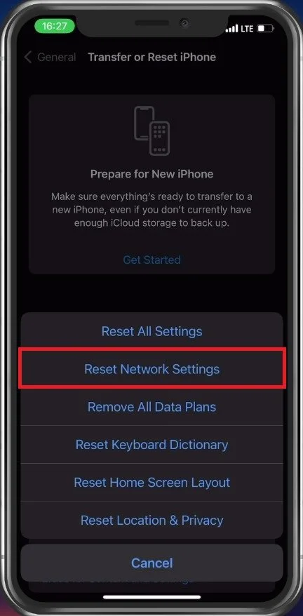 In your iPhone settings, tap on General, and scroll down to access Transfer or Reset iPhone. Next, tap on Reset and then Reset Network Settings. Your iPhone will take a few seconds to restart, and your network settings will be reset to their factory values.