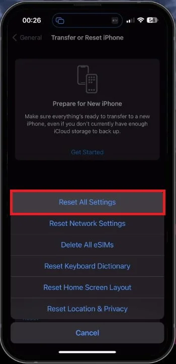 Choose "Reset All Settings" and confirm your action. Remember that this process will revert all your settings to their default values but won't erase any data or apps on your device.