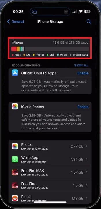 Next, verify that your iPhone has ample storage space to function smoothly. Navigate to your iPhone Settings, tap on General, and then select iPhone Storage. Ideally, you should maintain at least 10% of your total storage capacity as free space. If you're running low on storage, consider removing infrequently used apps, unneeded photos, or large videos to create additional space. By ensuring sufficient storage, you'll help prevent your iPhone from experiencing random restarts due to resource constraints.