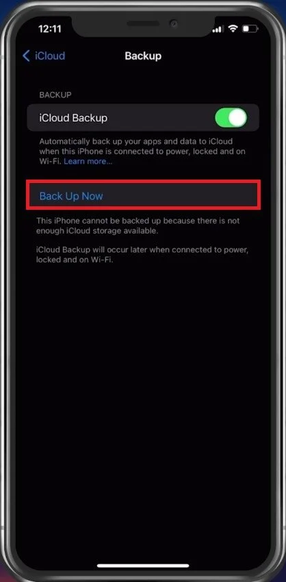iCloud > Backup > Back Up Now