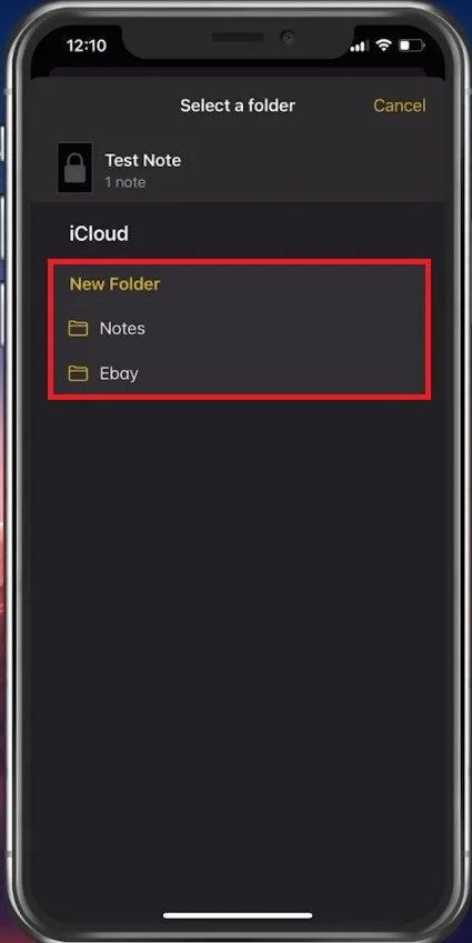 Select a folder to move the deleted note to