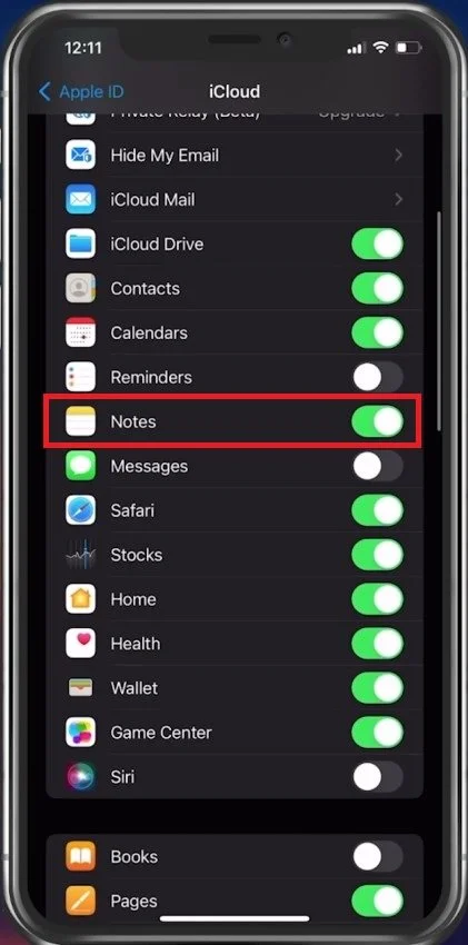 You can verify here if the notes app is enabled to be saved in your iCloud. You can also preview if other note apps are being synced with your iCloud, to keep your files safe.