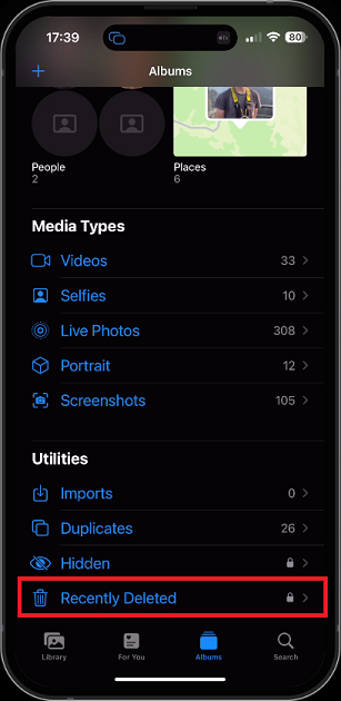 There are different ways of recovering deleted photos and videos on your iPhone or iPad, depending if the files have been recently deleted, permanently deleted, or if your photo album was ever synced with your iCloud on one of your devices. Open up your Photos app and navigate the Albums tab. Here, scroll down, and under Utilities, select Recently Deleted.