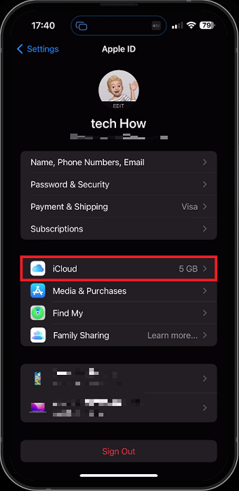 iPhone Settings > Apple ID > iCloud