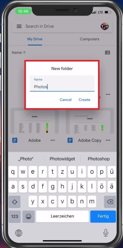 Tap on the plus icon on the bottom right and select create a new Folder. Rename it to your preferred name and select Create.