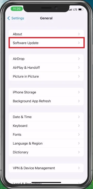 Lastly, in your iPhone settings, navigate to the General section. Here, tap on Software Update. Make sure to download any update there might be available to you before restarting your device.