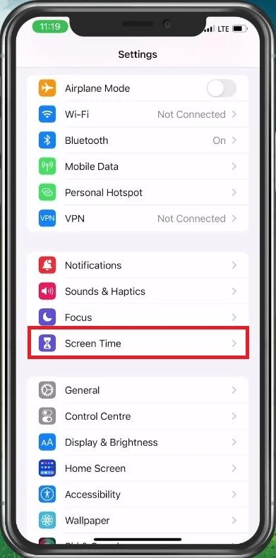 First of all, open up your iPhone settings. From here, tap on Screen Time.