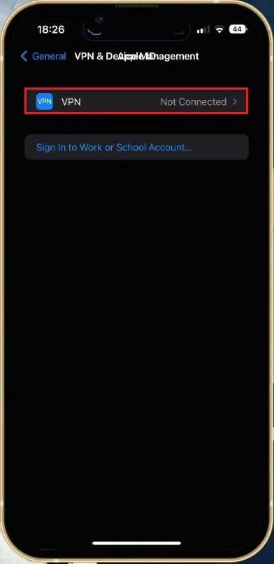 In your General settings, tap on VPN & Device Management. Ensure that your VPN or proxy connection is disabled when making purchases with your iPhone, as your payments can otherwise be blocked.