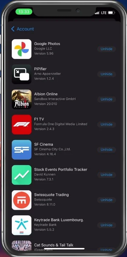 Access this section of your settings by using Face ID or your passcode and then tap on Hidden Purchases.
