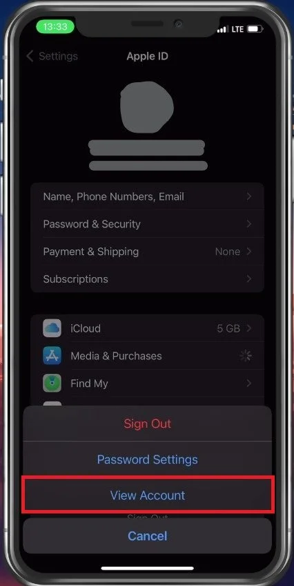 If you feel like apps have been hidden by another user, then there is a way to find the complete list of apps which are hidden in your purchase history. In your iPhone settings, tap on your Apple ID name. Here, tap on Media & Purchases and then View Account.