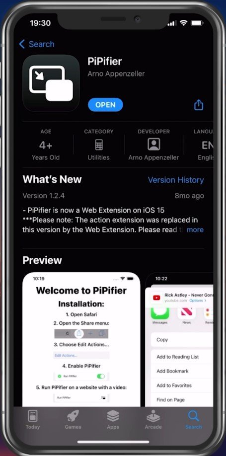 By default, YouTube does not allow users to use picture-in-picture (PiP) directly from their application on their iOS device, but you can use a different app to use picture in picture from your browser. To do so, head over to your App Store and look up PiPifier. The free app should be downloaded in a couple of seconds.