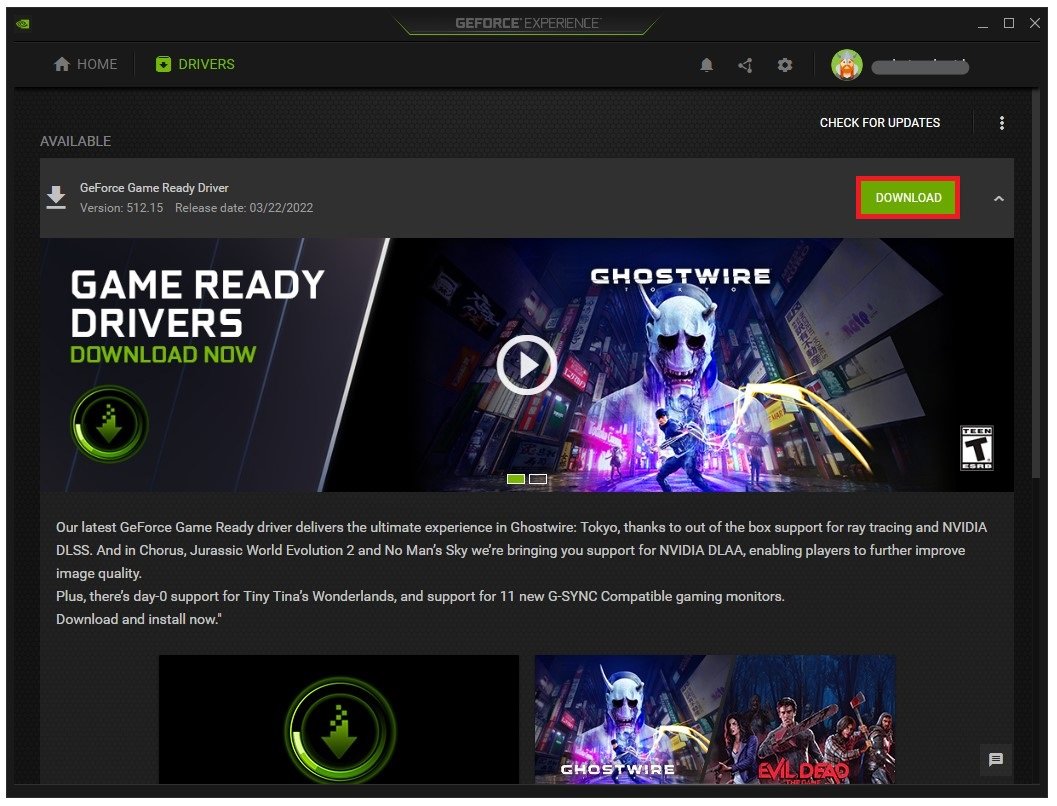After applying your changes, you can close the game and ensure your graphics driver is up to date. It’s suggested to use the GeForce Experience application for an NVIDIA GPU, but you can also use the AMD driver suite.