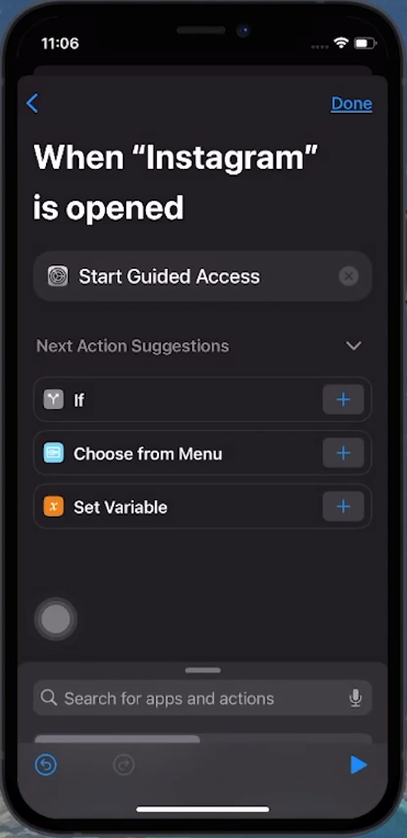 After enabling Guided Access on your iPhone or iPad, the next step is to create a new shortcut using the Shortcuts app. This allows you to automatically activate Guided Access when you open a specific app, like Instagram. Here's how to do it: