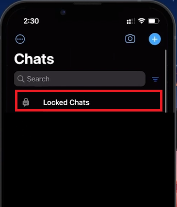 Swipe down from the chat list to reveal the "Locked Chats" section.