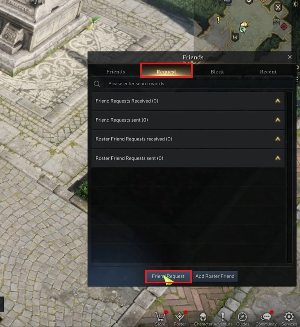 While playing Lost Ark, please navigate to the Community section when selecting it on the bottom right of your screen.