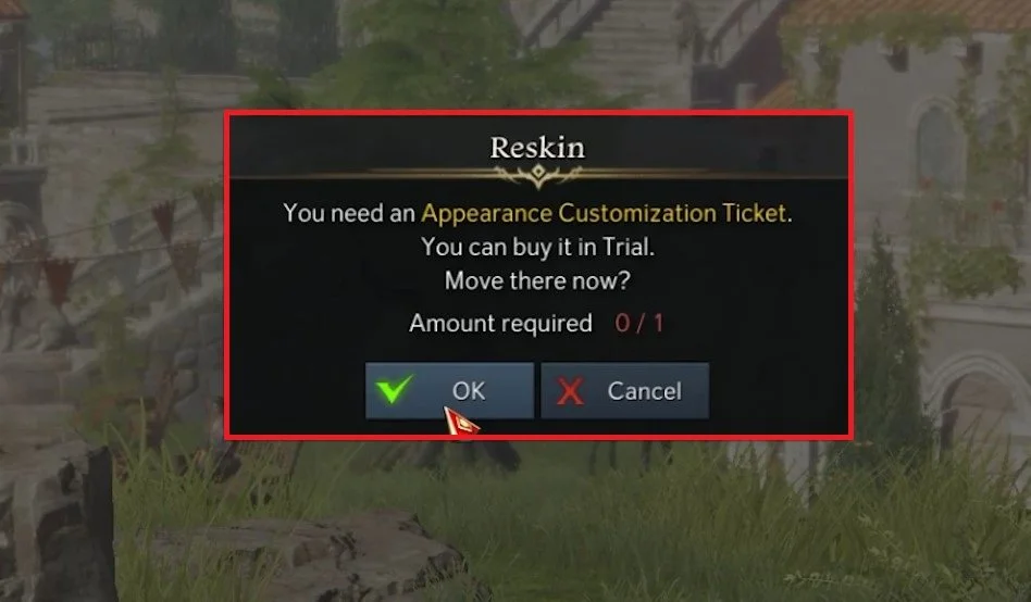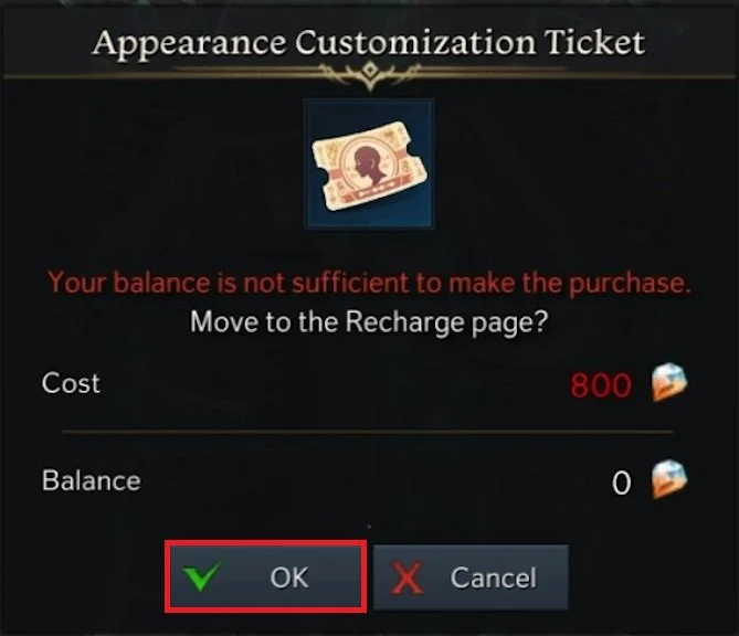 Changing your character's appearance will cost you an Appearance Customization Ticket. To buy this item, press Ok. You can then proceed to change your appearance.