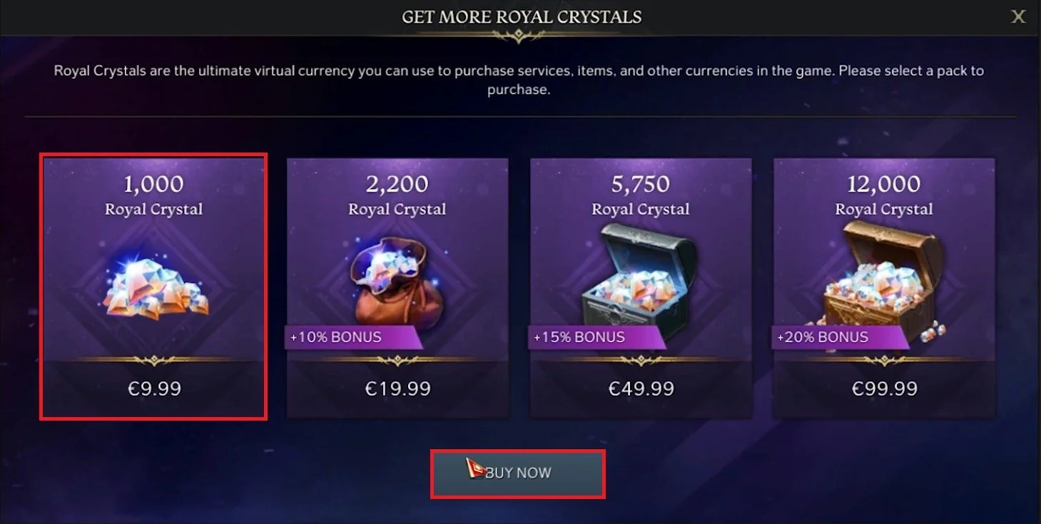 These changes will not apply until you buy the ticket to 800 Royal Crystals. When clicking on Buy Change Ticket, you will be presented with the final price, whereas if you don’t have the currency, you will be redirected to the Recharge page.