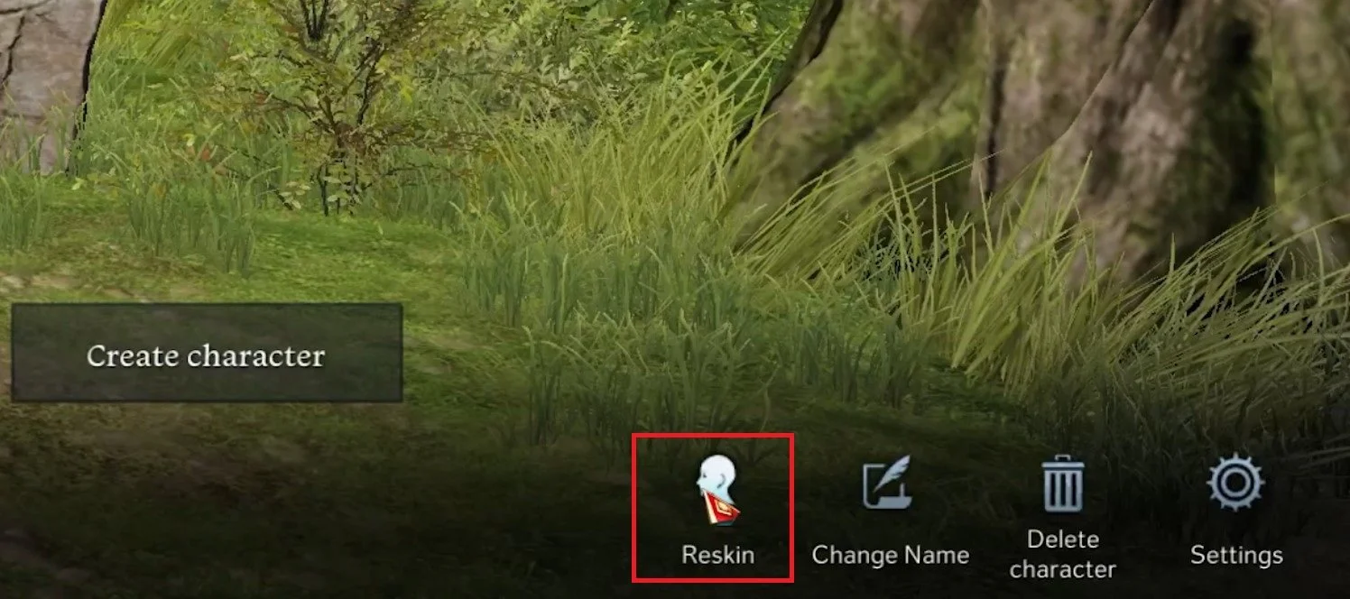 Before launching your character on your preferred server, you can select the Reskin option on the bottom right of your screen to change your appearance.