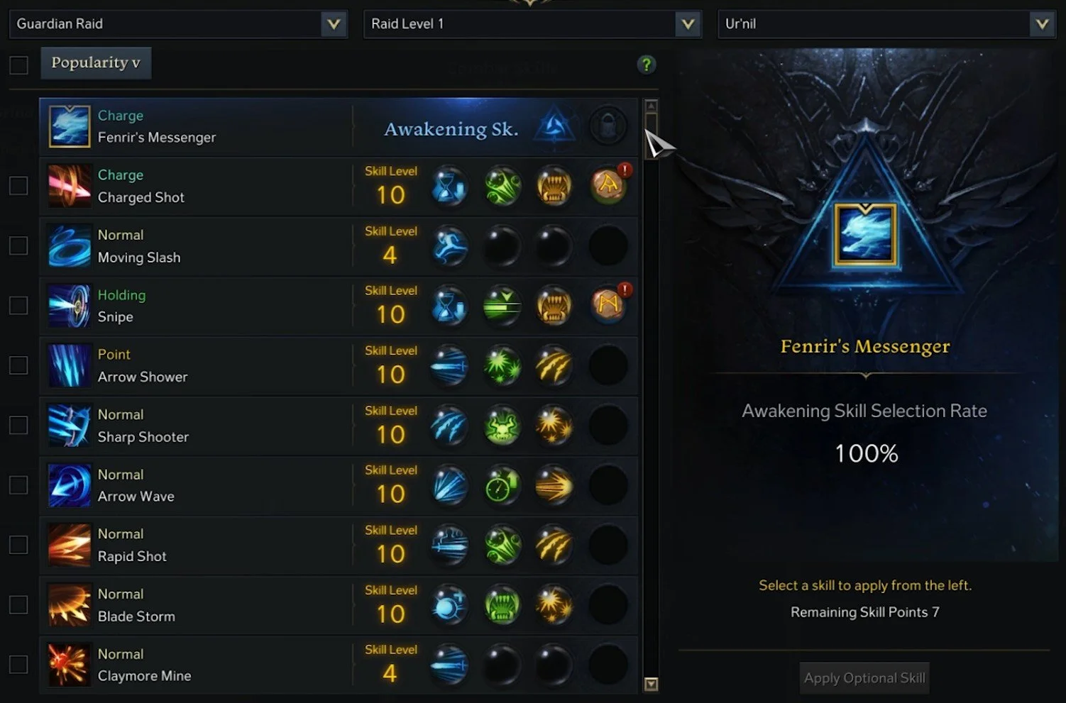 Lost Ark Character Skill Menu