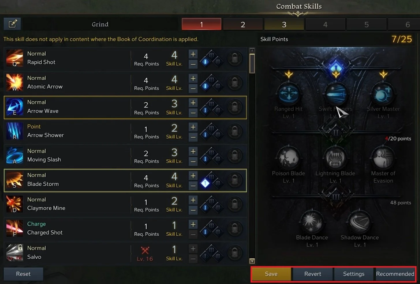 When clicking on Recommended, the game will recommend your skill level for each ability, depending on your amount of skill points available.