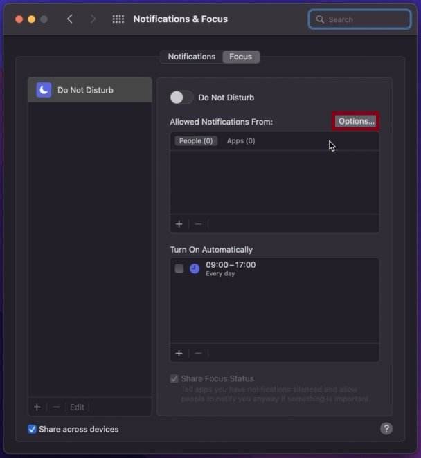 In your Focus Preferences, you can also see which notifications are allowed when using a focus mode, in case you wish to still use focus modes while getting iMessage notifications.
