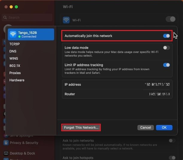 Make sure that Auto-Join is enabled, and proceed to remove the WiFi network from the list of known networks. Alternatively, select Forget This Network. This will allow you to reconnect to the same WiFi network and can, in many cases, already fix WiFi connection issues.