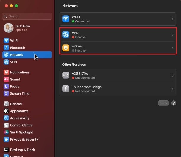 If the problem persists, navigate to the Network section of your Mac’s settings. Proceed to disable any VPN connection that could be running on your Mac. VPNs can be very valuable, but they can also prevent you from having a stable WiFi connection. Below, disable your Firewall, too, for now, to see if it’s stopping you from connecting to the internet correctly.