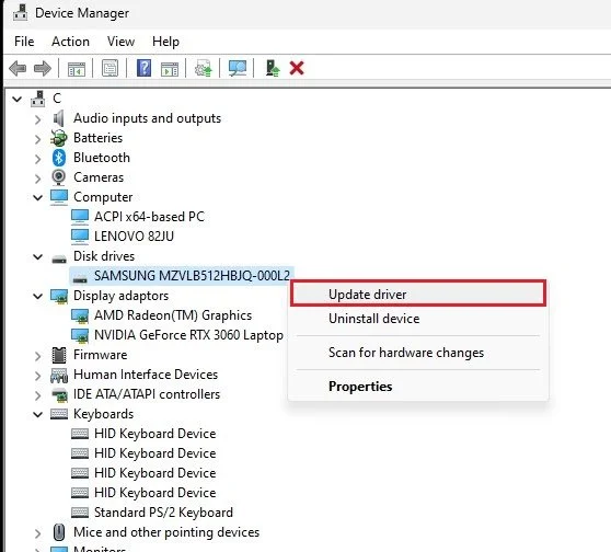 Expand your Disk Drives, Display Adaptors, Monitors, Network Adapters, and other hardware you use with your PC. For each, right-click the device and select Update Driver. Click on Search automatically for drivers and wait a moment for Windows to ensure that your drivers are up to date.