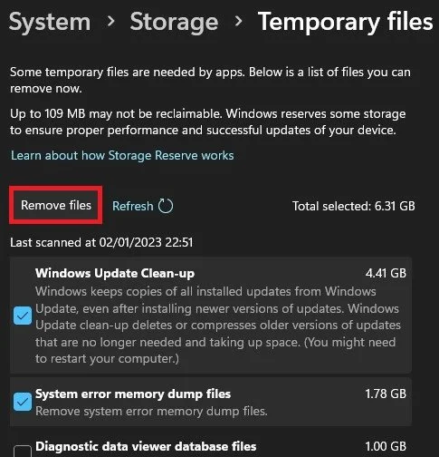 When this is done, navigate to your system settings and click on Storage. It might take a second to load your storage information, and then click on Temporary Files.