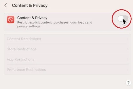 Under Content & Privacy, make sure to completely disable restrictions or disable app and preference restrictions on your account. Some applications, especially non-native Mac apps, will require a restart for the location services settings to take effect.