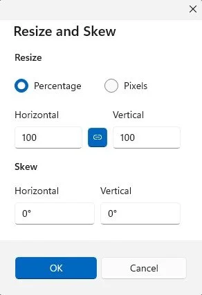 When this is done, locate this image panel and click on the Resize and Skew button, which will open up this panel.