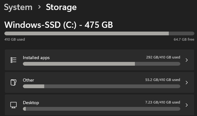 Navigate to 'System' under your Windows settings, then select 'Storage.' Ensure there's enough free space on the drive where apps are being installed.