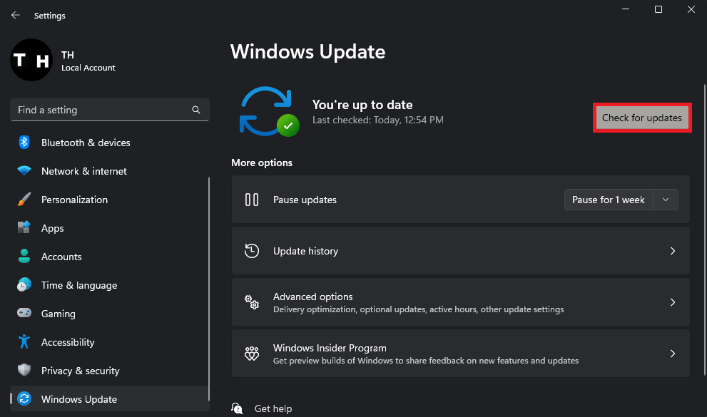 Select "Check for Updates" and download any available updates for your system. Once the download is finished, restart your PC, and the Microsoft Store issue should be resolved.