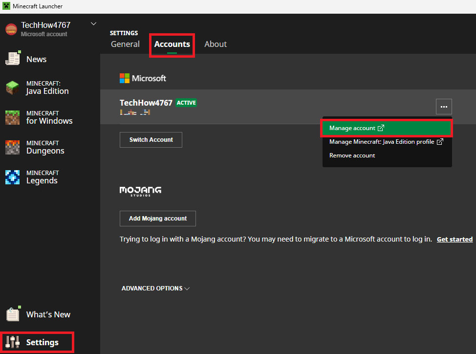Select Your Account Type: Whether you have a Microsoft or Mojang account, the process will be slightly different. Click to manage your specific account type and follow the respective procedure.